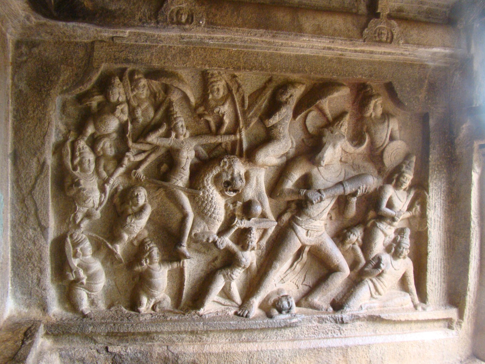 Puranic scenes. Here the Pallava artisans have scaled the summit of glory by